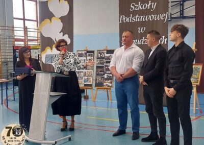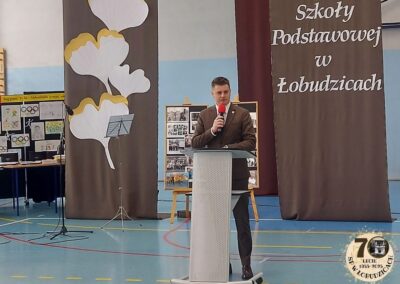 28 listopada 2025 roku odbyły się uroczyste obchody 70- lecia naszej szkoły. Było nam niezmiernie miło, że przyjęli zaproszenie na uroczystość i zaszczycili nas swoją obecnością: p. Jacek Zatorski – Starosta Bełchatowski, p. Agnieszka First – Wiceprzewodnicząca Rad Powiatu w Bełchatowie, p. Kamil Światała – Burmistrz Zelowa, p. Sylwester Drozdowski – Przewodniczący Rady Miejskiej w Zelowie, p. Janusz Brzozowski – Łódzki Kurator Oświaty, ks. Jacek Kucharski – proboszcz Parafii w Łobudzicach, dyrektorzy szkół i przedszkoli, przedstawiciele Rady Rodziców, emerytowani nauczyciele, sołtysi, rodzice uczniów, przyjaciele szkoły.