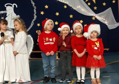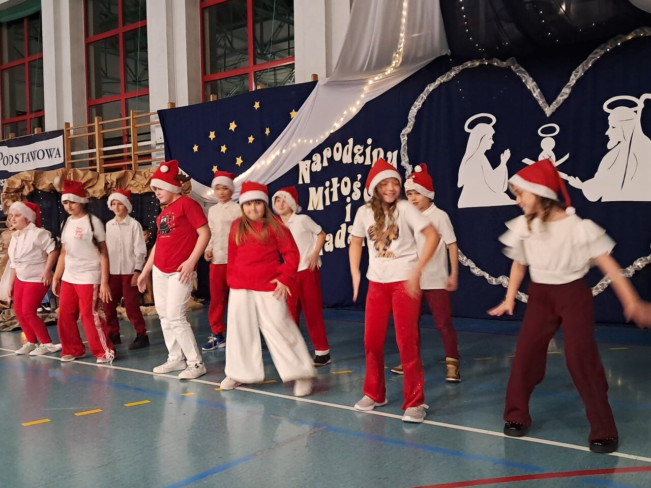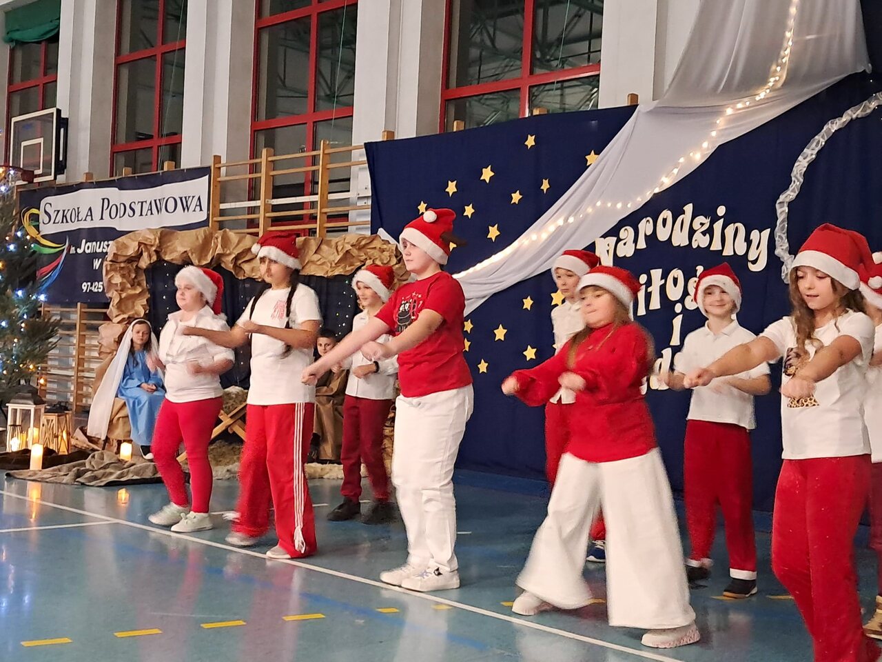 ????????Całość wzbogaciły występy młodszych uczniów: śpiew przedszkolaków, kolędy w wykonaniu uczniów kl. I–II oraz układ taneczny trzecioklasistów. Ten ostatni wywołał radosny uśmiech na twarzach licznie zgromadzonej publiczności.